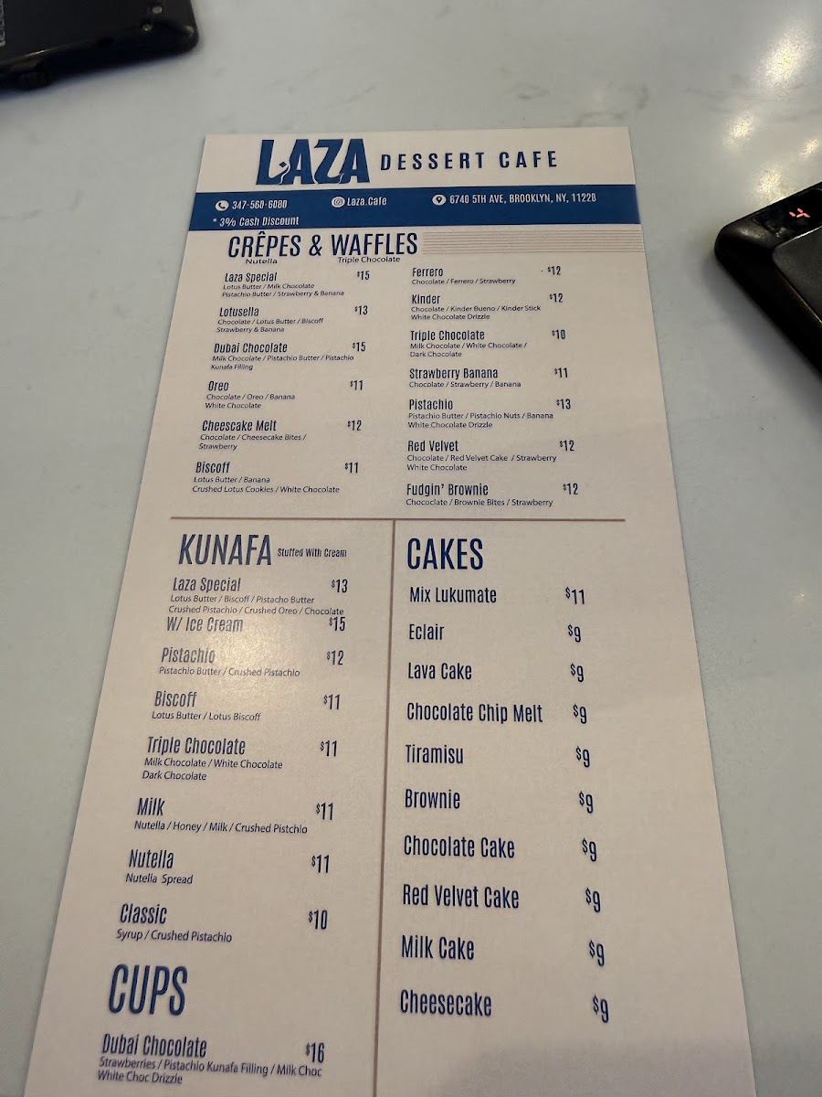At Laza Dessert Cafe, the menu offers a thoughtful selection of sweet treats and comforting drinks crafted to suit laid-back afternoons and casual meetups. The focus is on indulgent desserts like rich kunafa varieties, delicate crepes, and creamy shakes that complement the café’s cozy and inviting atmosphere.