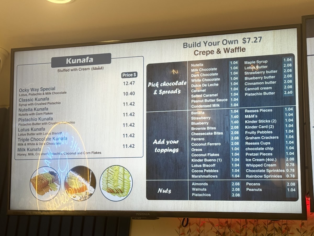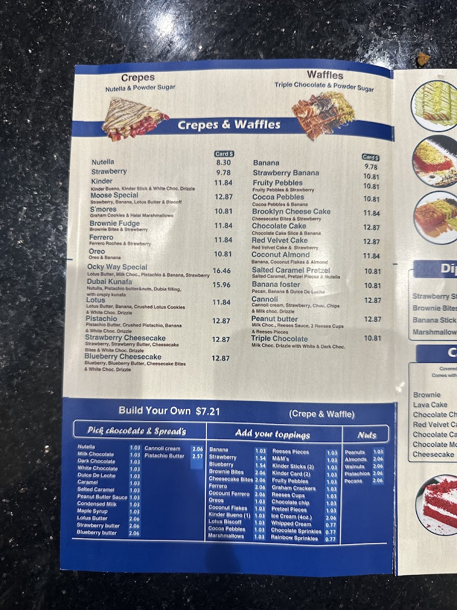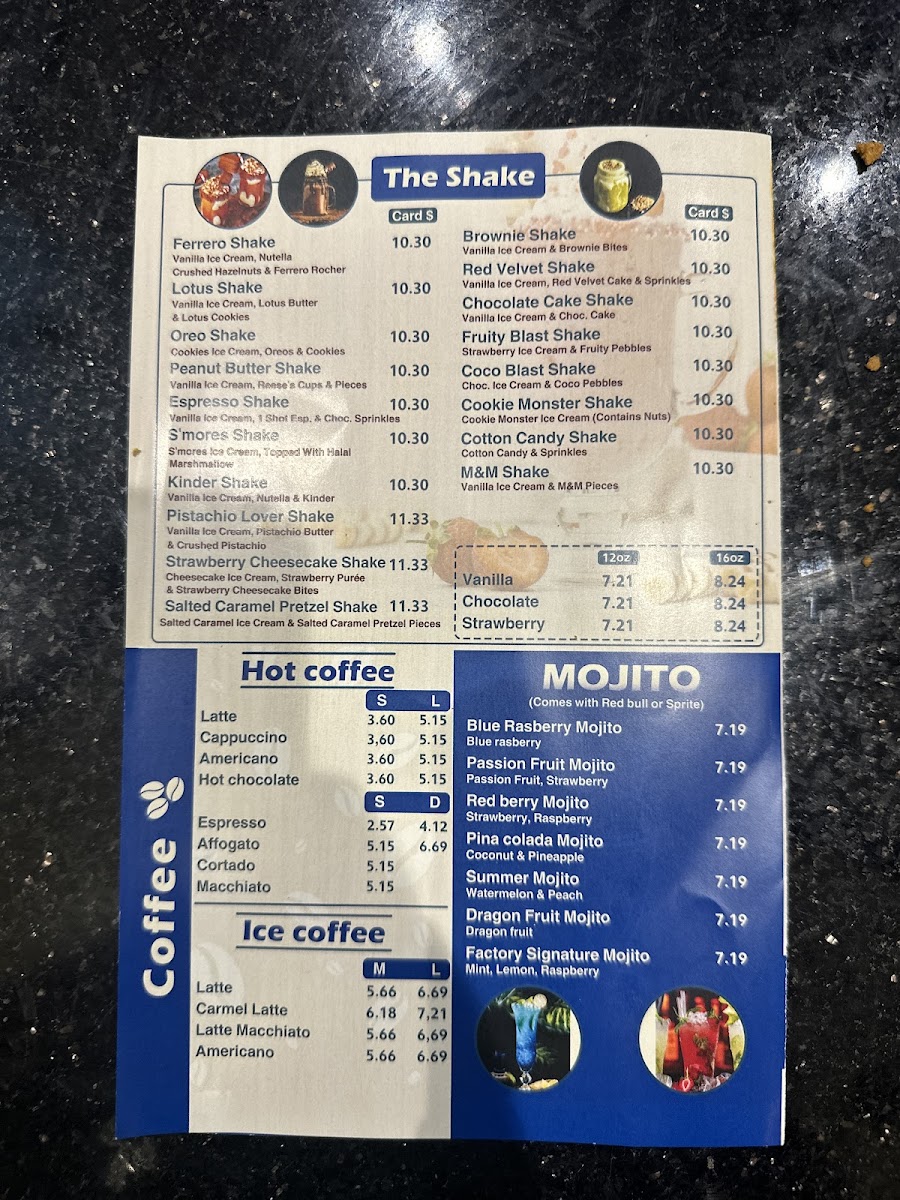 You’ll find specialties such as the Triple Chocolate Kunafa, the playful Kinder Crepe, and inventive offerings like the Dubai Kunafa Waffle. Alongside these, refreshing iced coffees and frappuccinos provide a perfect balance, inviting guests to relax and savor each moment.